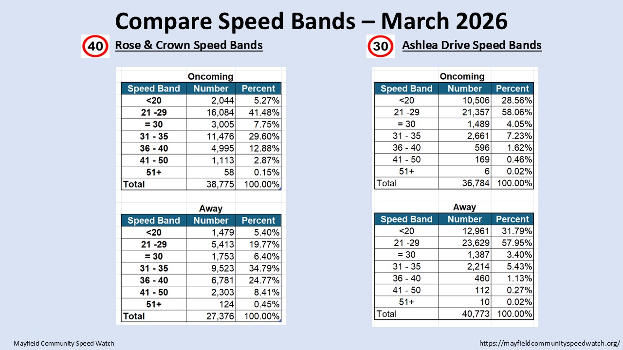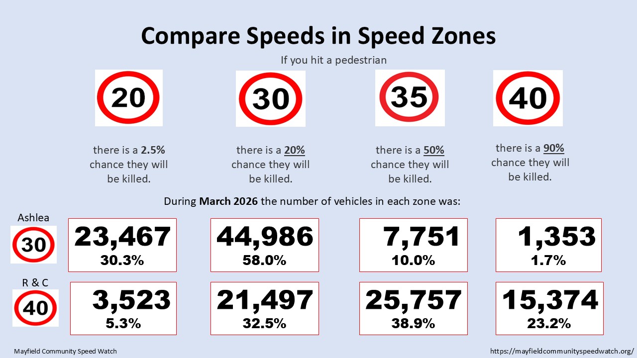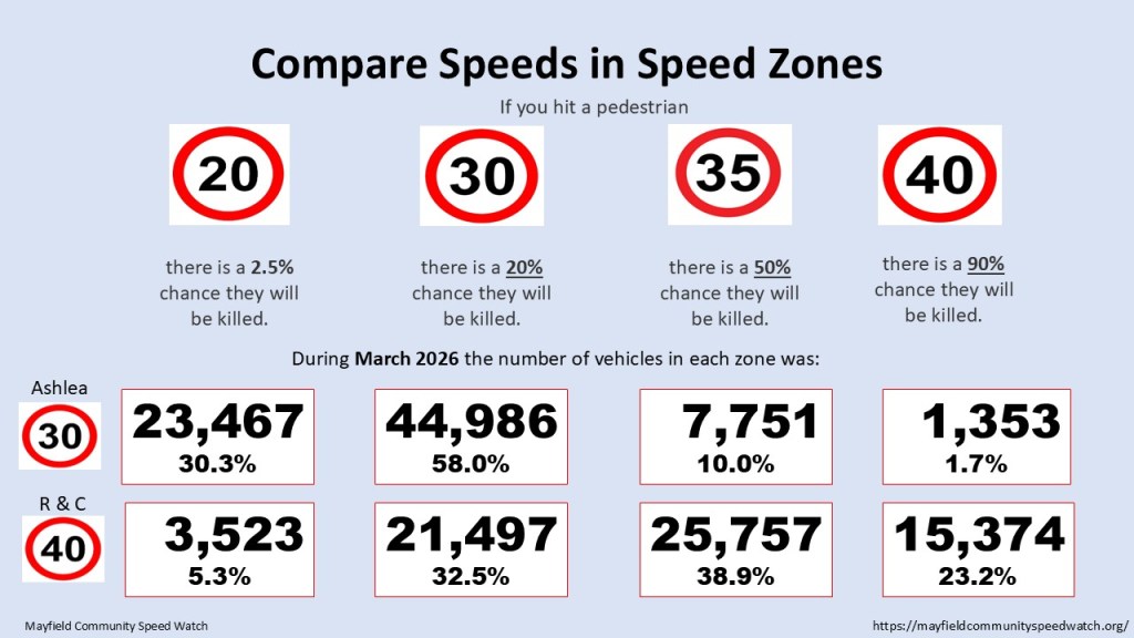 Here are the summary data sheets for March 2026 highlighting the data in speed bands that vehicles were traveling highlighting how this can relate to accidents and fatalities. Click on the image for a full view or download the pdf file. You can access previous months by clicking on Reporting Packs in the menu. Further data will be uploaded soon.